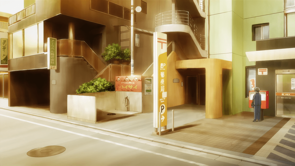 First I headed just down the road from the guest house to a post office, where we see Kotarou posting his story to the publishing agency. At least that’s what we can infer from the scene, it’s not mentioned what he’s doing.