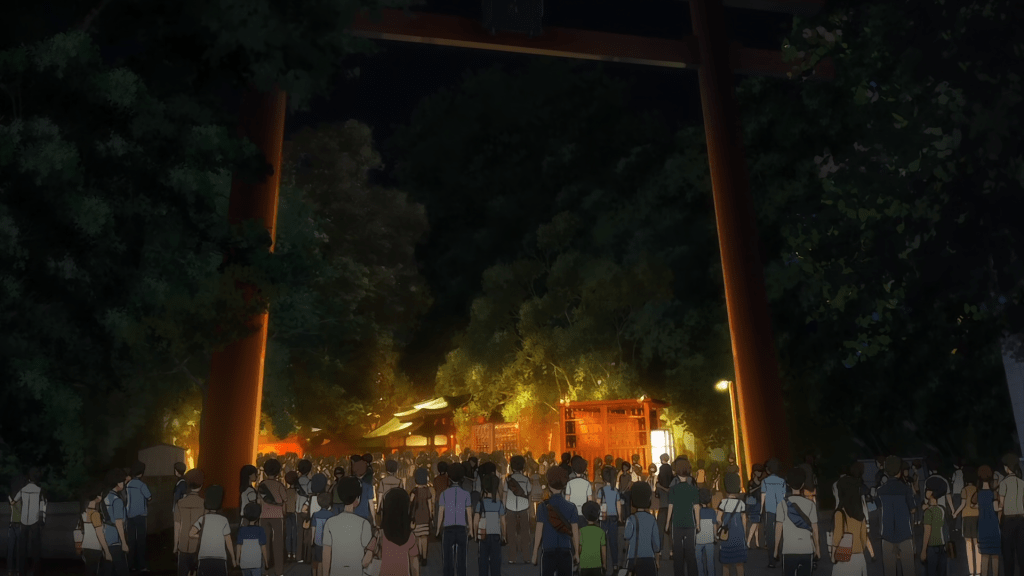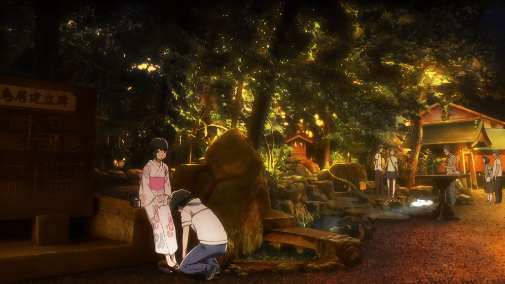 So after writing that previous sentence, I had to wait for Alessio to finishing skateboarding for about an hour. Anyway, we headed straight up to the Hikawa shrine for those night shots. This is where Akane and Kotarou finish their date on episode 8 after having a wonder through town. It’s also where I’ll finish this pilgrimage. I started out taking pictures with my camera but the shots turned out pretty ass. So I used my phone camera for the last few shots instead, and that takes waaaayyyy better night shots. You’ll be able to tell the difference between the two.