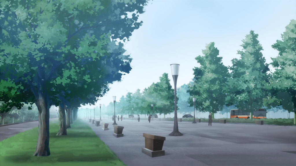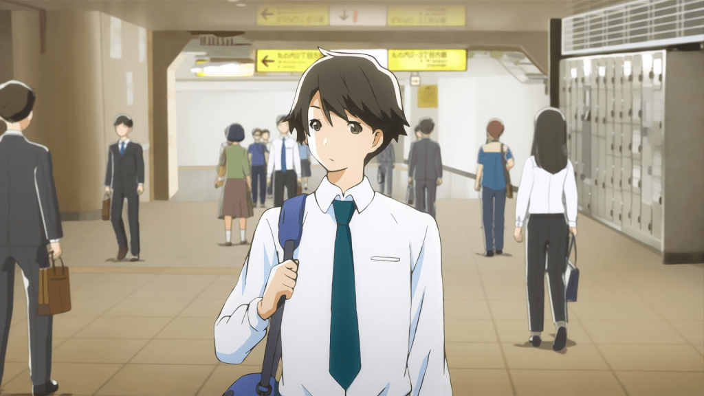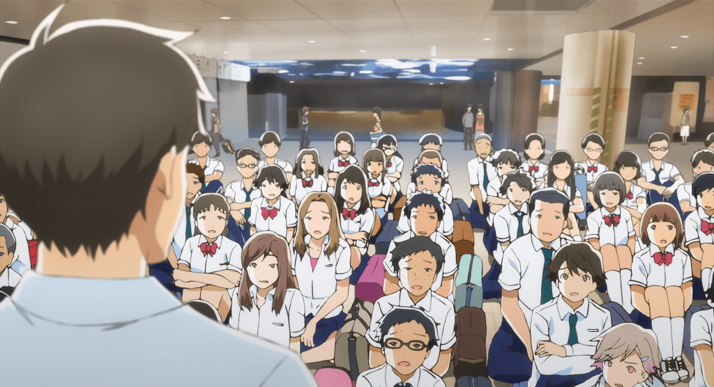 The next two shots I was going to miss, but I stumbled across them completely by accident. I spotted the lockers with the passage way behind, and had a oh shit I found it moment. After finding that I was able to backtrack and find the other two shots. This is the point where the students meet, and is actually a designated meeting point in real life. But as you can see from the comparisons, a lot has changed, which is why I walked straight past on the first attempt.