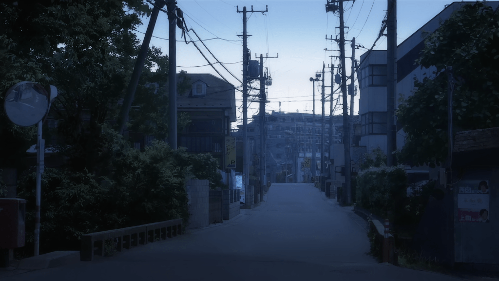 I headed over the bridge and turned left before the railroad crossing, weaving left and right through a small, quiet neighbourhood. I made my way to a spot next to the Kawagoe line for a shot of the railway bridge we see early on in the anime.