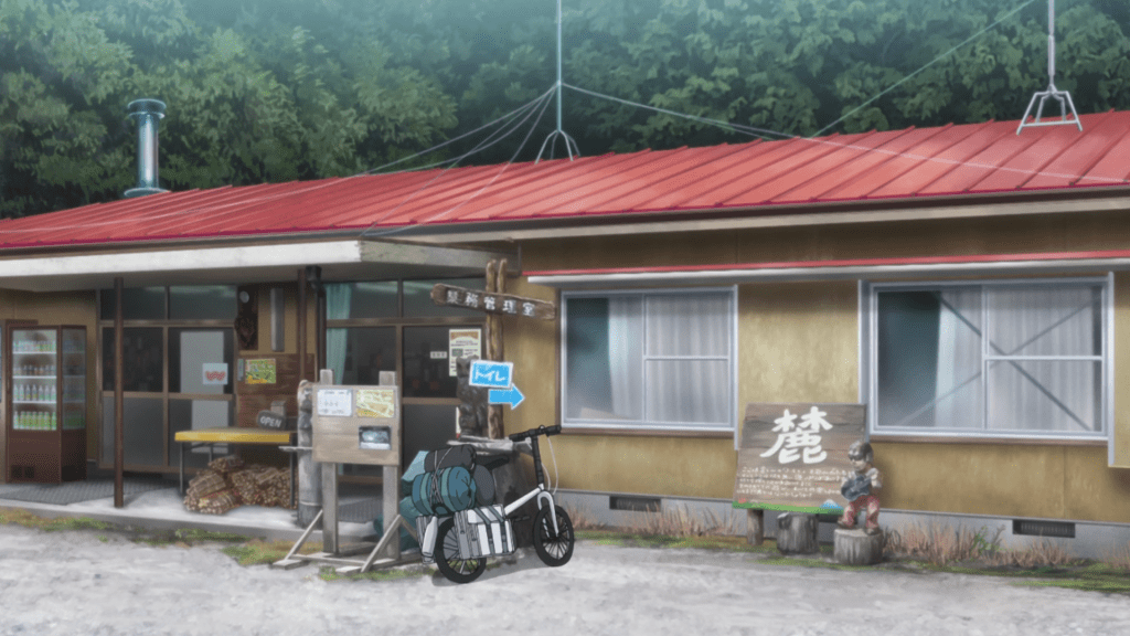 Just next to the office building are those two statues of the tiger and the boar (I think?). We see these and the other following shots when rin takes her little walk around the campsite.