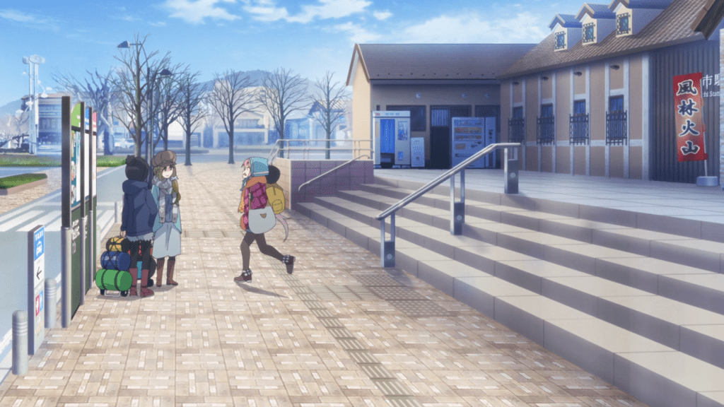 The next day I set out to Yamanashi Station, where the members of the outdoors club go on their trip to Eastwood camping grounds in episode 4. On the way they stopped off at Fuefukigawa Fruit Park and Hottarakashi Onsen. And just like them, I was going to do it all on foot. Fortunately I left my big heavy bag at the hostel so I didn’t need to lug it around with me.
