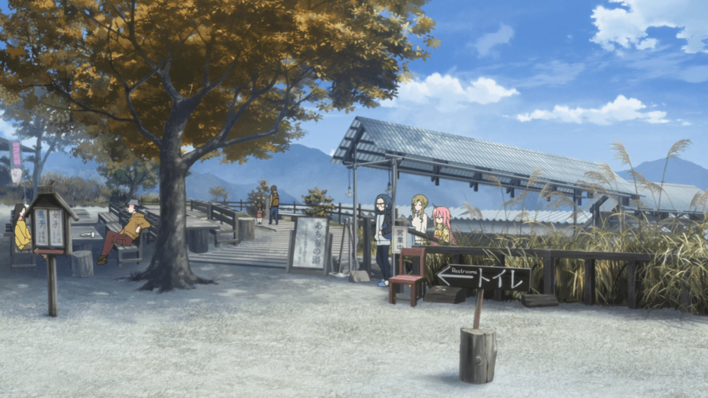 Next the girls stop by Hottarakashi Onsen (called Hottokeya Onsen in the show). It has a really nice view of the valley from the baths. But of course, it was closed.