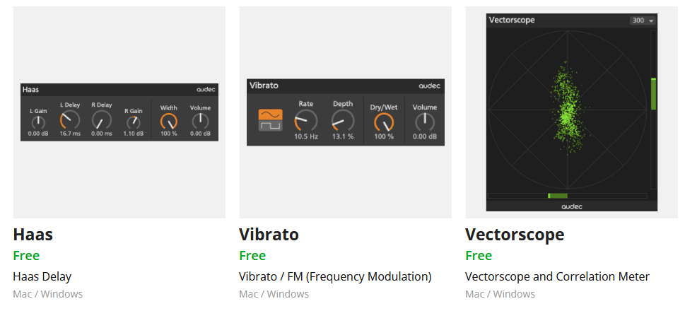 Audec have a lot free plugins, as well as “lite” versions of their paid plugins, which are simplified versions of their fully-featured counter parts. My favourite that I use quite a bit is Spread Delay Lite, which can make some really nice stereo rhythmic interest when applied to drums, and works great on other instruments too. I need to get round to downloading the other plugins and giving them a spin. Get them here: