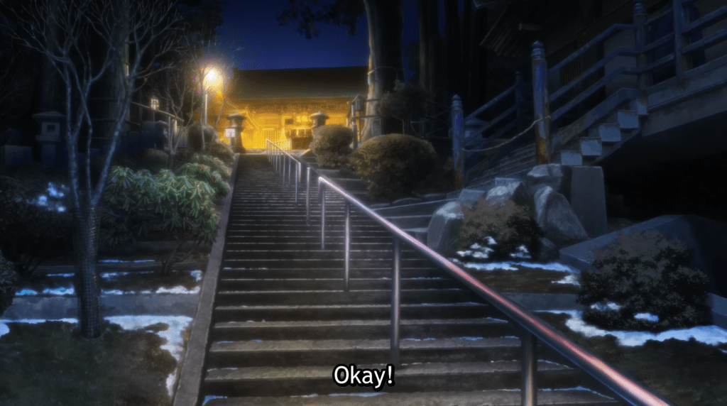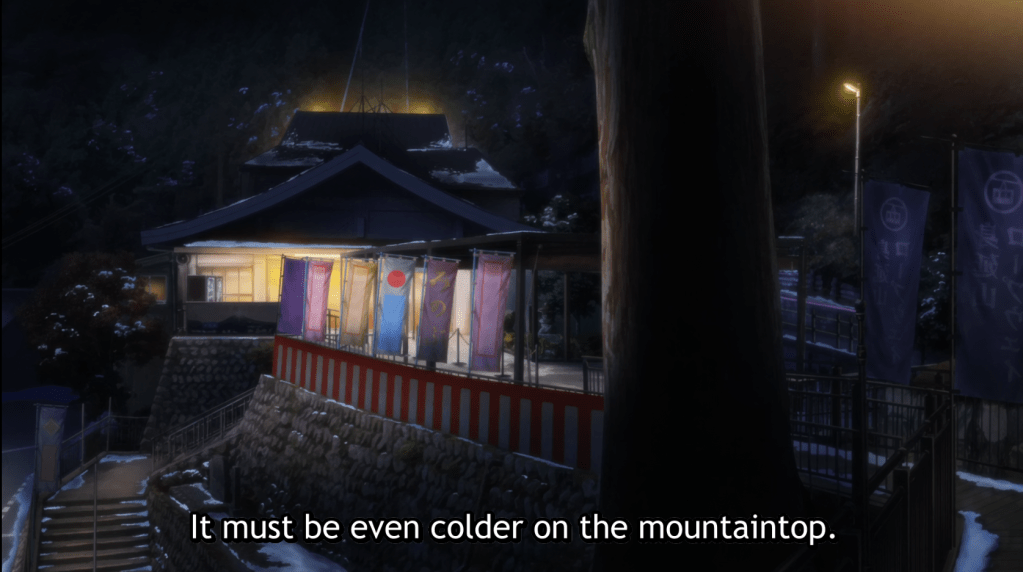 It’s interesting to note that Kuonji temple is Buddhist, but the anime doesn’t so much as hint to it, despite having to basically pass right through it to reach the ropeway. Anyway.