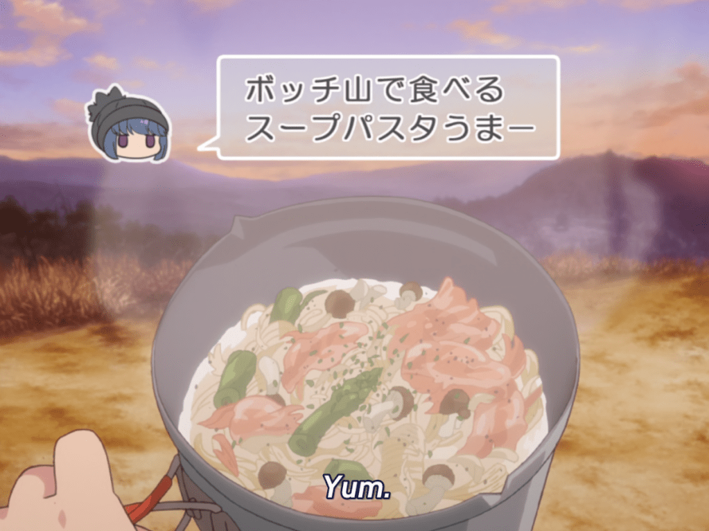 After all that photo taking we had some dinner, which was instant ramen á la boiling water in typical Rin fashion. We dozed off to the sounds of the Yuru Camp fan snoring rather violently in the area next to us.
