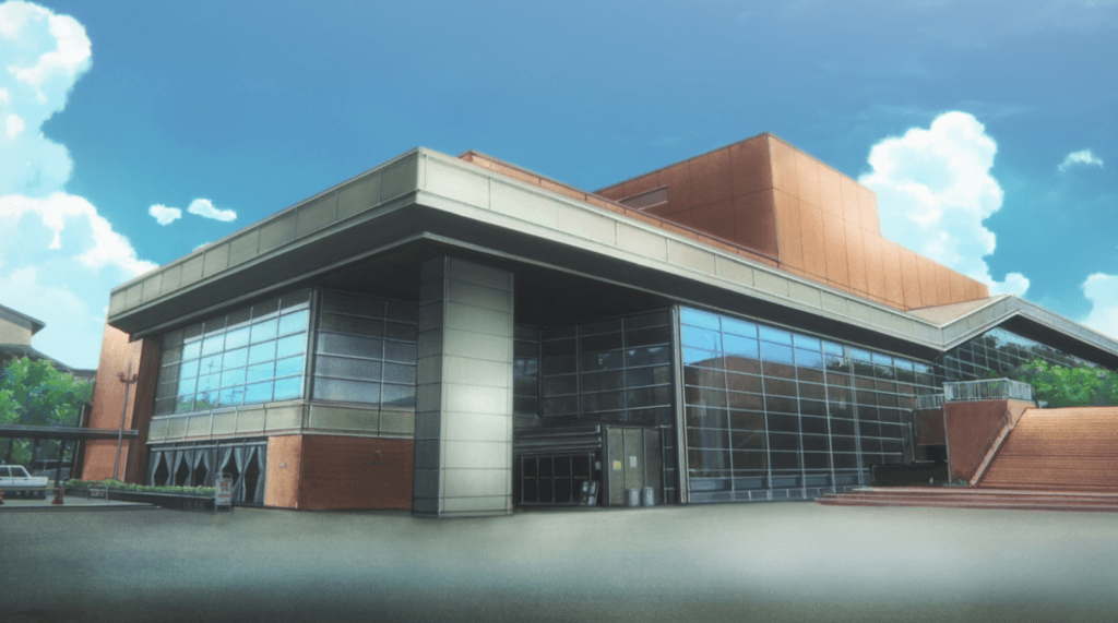 The taxi driver took us on a rollercoaster ride up the hill down the backstreets to the Uji city cultural hall. This is where Reina and Kaori have their 1v1 to decide who gets to play the trumpet for the school near the end of season 1. Unfortunately it was closed that day but I remember the taxi driver saying usually you can go inside since it’s a public building. But don’t quote me on that. So shots from outside the building have to suffice.