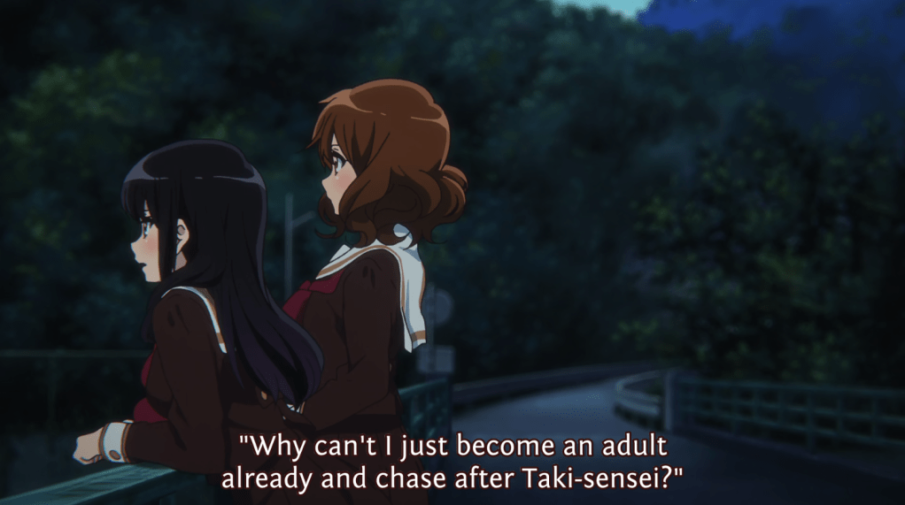 And this is also where Reina and Kumiko meet for their rather romantic hike up a nearby (small) mountain.