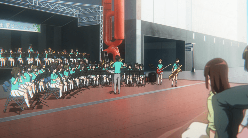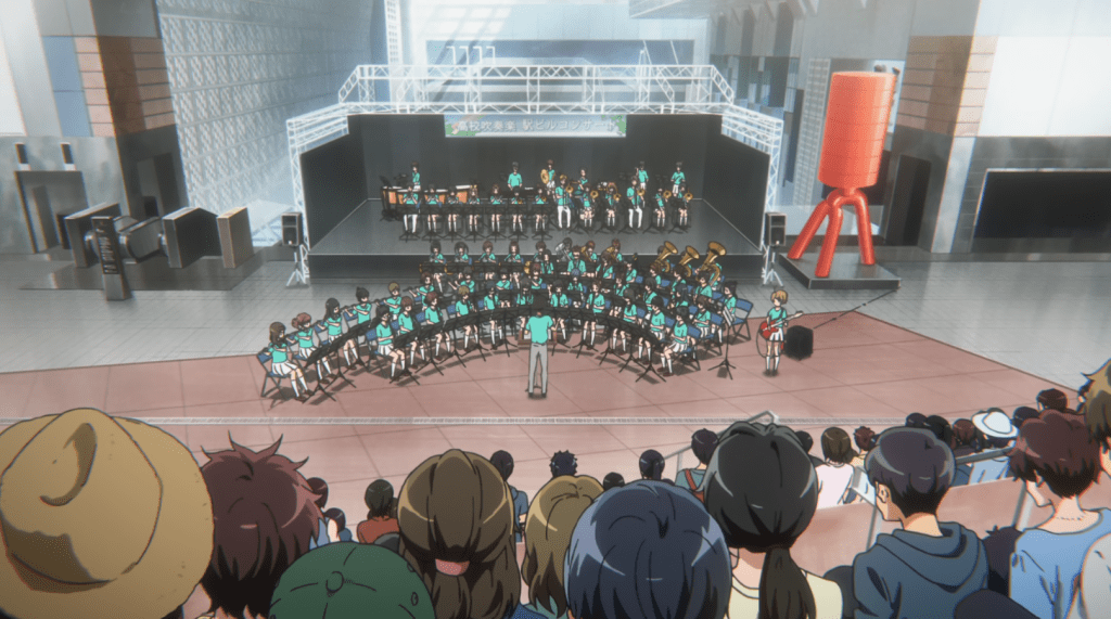 This is where Kitauji do their fun jazzy performance in their bright blue tops in episode 7 of season 2. This is probably one of the most impressive and unique station buildings I’ve ever seen.