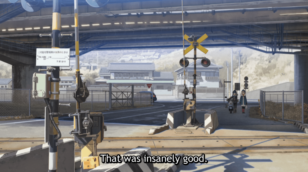 I said my goodbyes, and left the restaurant, completely full to the brim. I looked along the road to the right, which is where the two girls head over under the bridge to Nadeshiko’s friends house. But I hadn’t prepared to go that way, and there wasn’t much to see anyway.