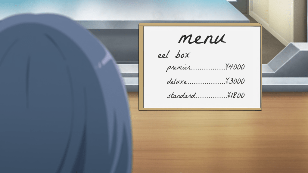 With the help of google translate, I asked the chef what the difference between the different grades. From what I gathered, standard is farmed eel, deluxe is wild, and premier is a higher grade of wild (if I can remember correctly). And about the chef by the way, he’s the same dude in the anime too! I watched him prepare my eel just like Rin and Nadeshiko did at the counter.
