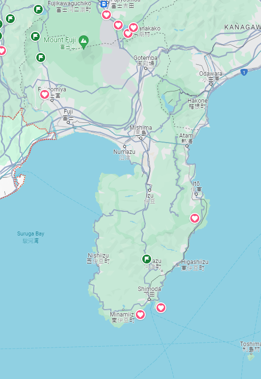 We took the Ito line that follows the eastern coast of Ito, a rather large peninsula jutting out from under Fuji.