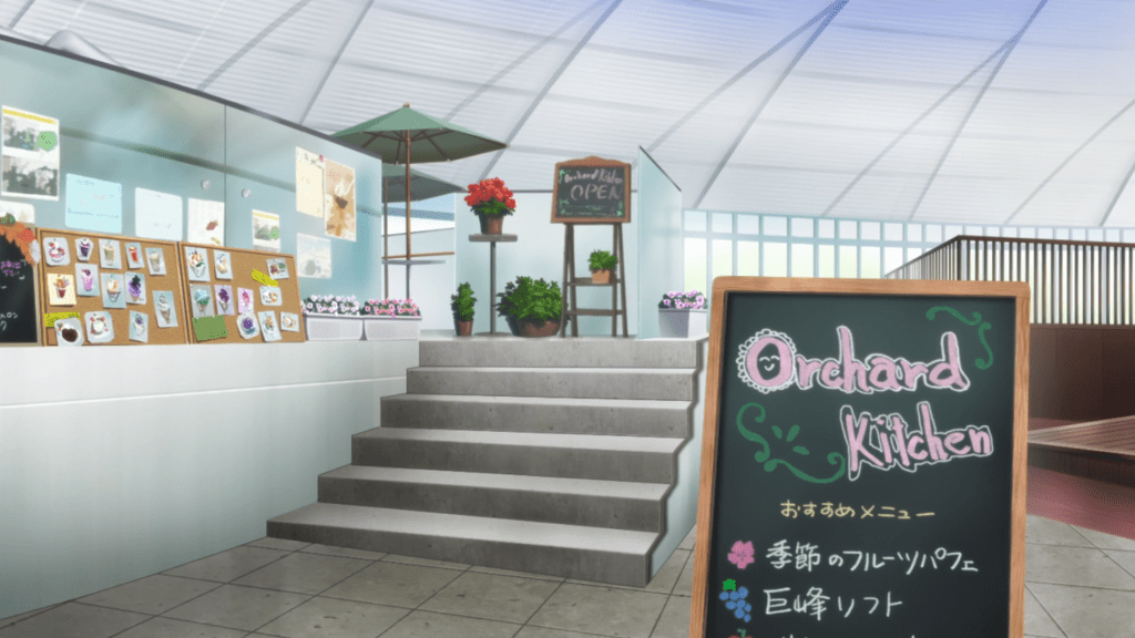 Right at the top of the fruit park is this shot from the anime, when Nadeshiko snaps this night shot for Rin.