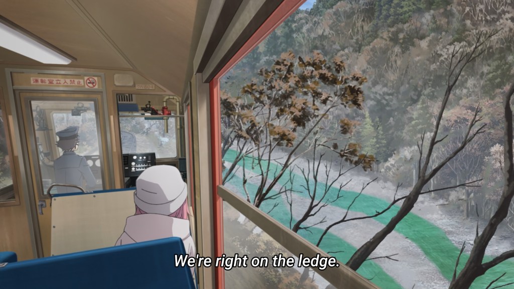And like they say in the anime, it’s a bit of an event for the passengers, so they often climb out the train to watch it happen.