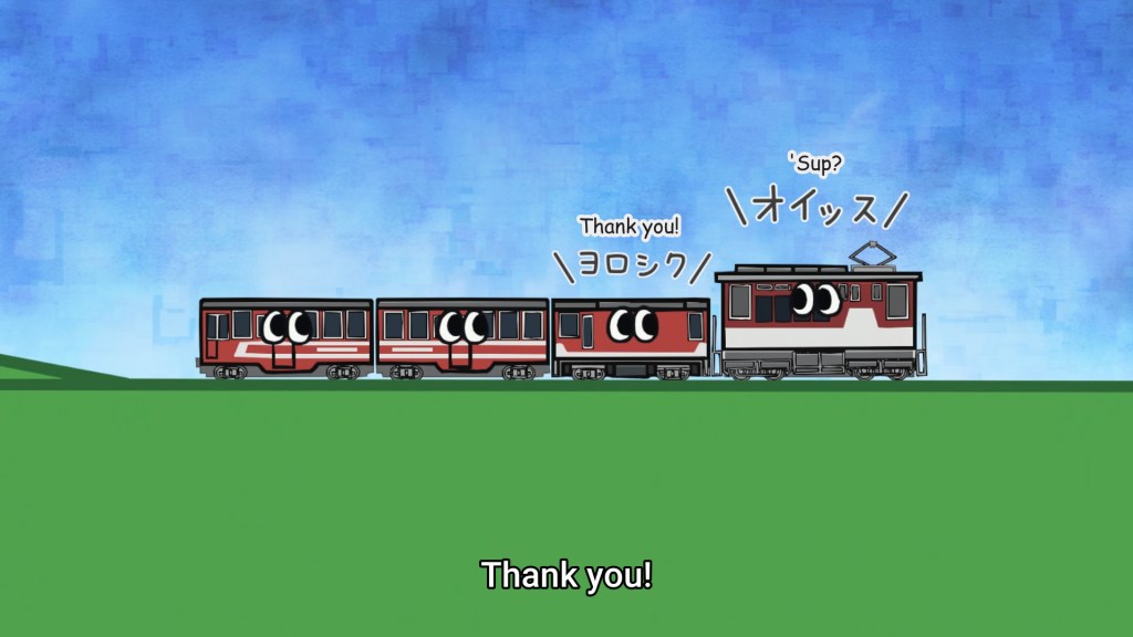 I remembered in the anime that they mentioned that they run lots of retro and steam trains up and down this line, but seeing Thomas really caught me off guard.