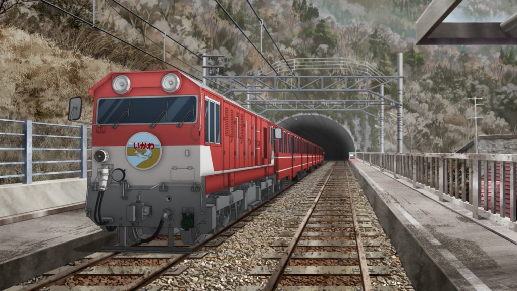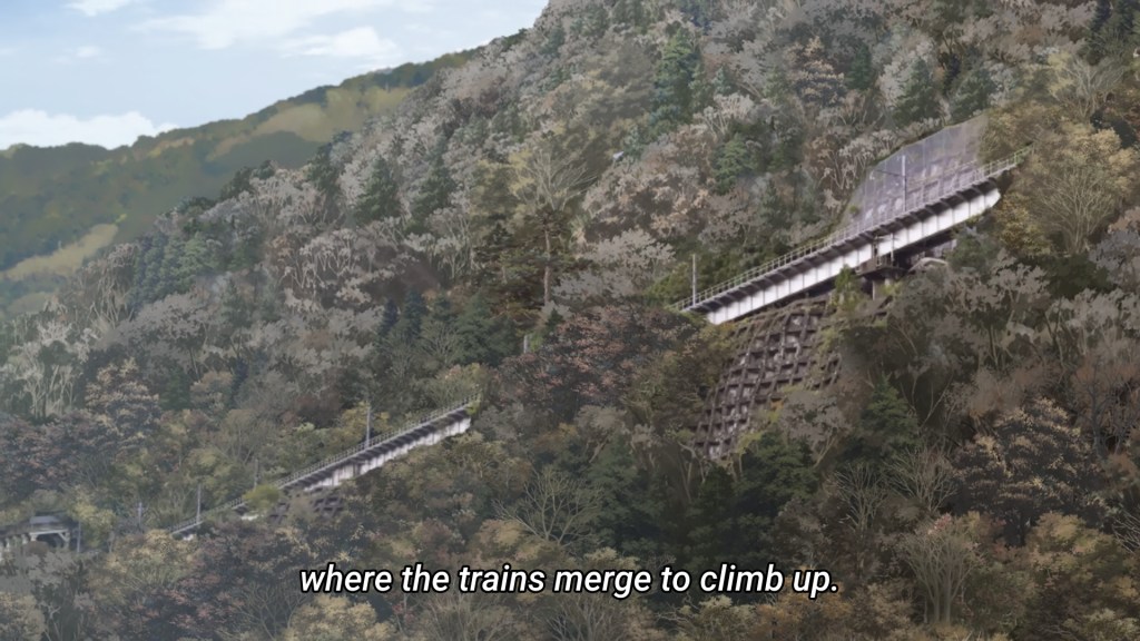 Back at the bottom of the steep section of track where the larger locomotive coupled with the small train, this was the nearest stop to the campsite – illustrated by this handy map from the anime.